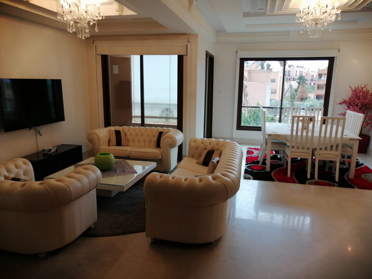 Immeuble de très haut standing avec Spa et Salle de gym, entourés de beaux espaces verts et situé dans la zone la plus huppée du quartier de l’Hivernage, proche de toutes commodités.