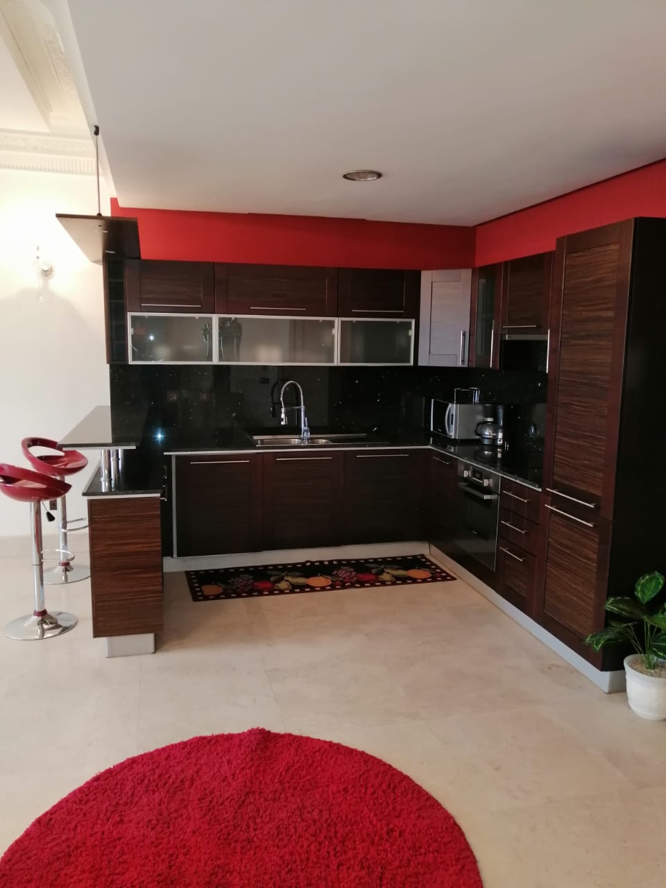 Sublime appartement, lumineux, très bien agencé, avec une décoration très raffinée et épurée. Avec des beaux espaces ouverts: – Salon européen en cuir véritable, télévision – Salle à manger – Cuisine américaine très bien équipée – Terrasse- SDB invités – Une chambre invités avec placards et rangements ouverte sur la Terrasse – Une Chambre parentale avec SDB privative et Dressing.