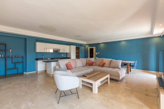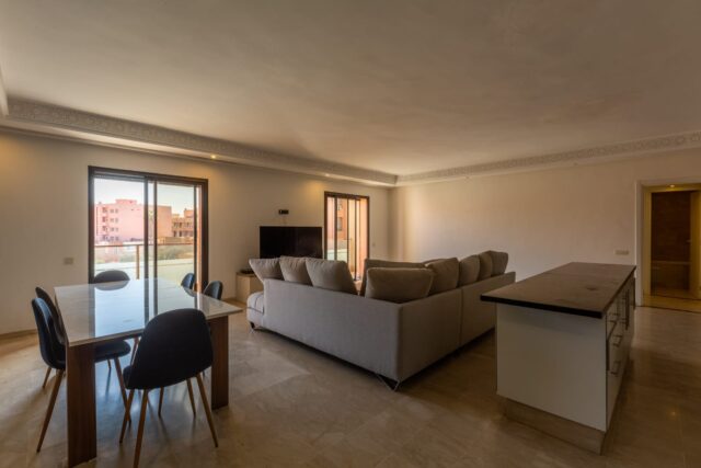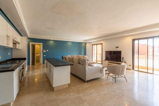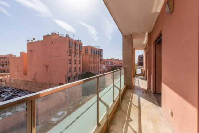 Très bel Appartement destiné à l’habitation ou à l’usage bureau, situé en centre-ville Guéliz, en façade principale d’un Immeuble de standing, proche de toutes commodités.