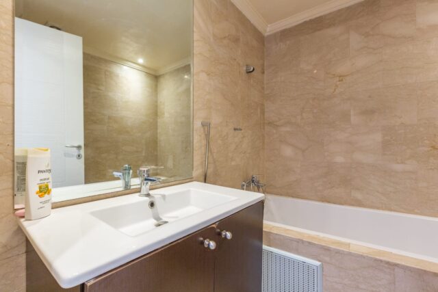 Cet appartement de 117 mètres carrés comprends très belle pièce Salon et Salle à manger avec une Cuisine ouverte, 2 Chambres chacune avec Salle de bain et rangement, et un Balcon-terrasse.