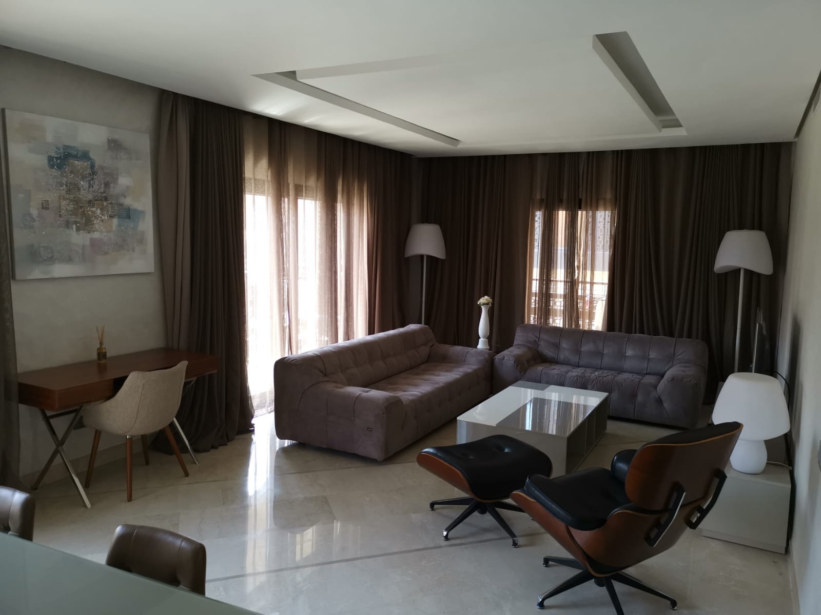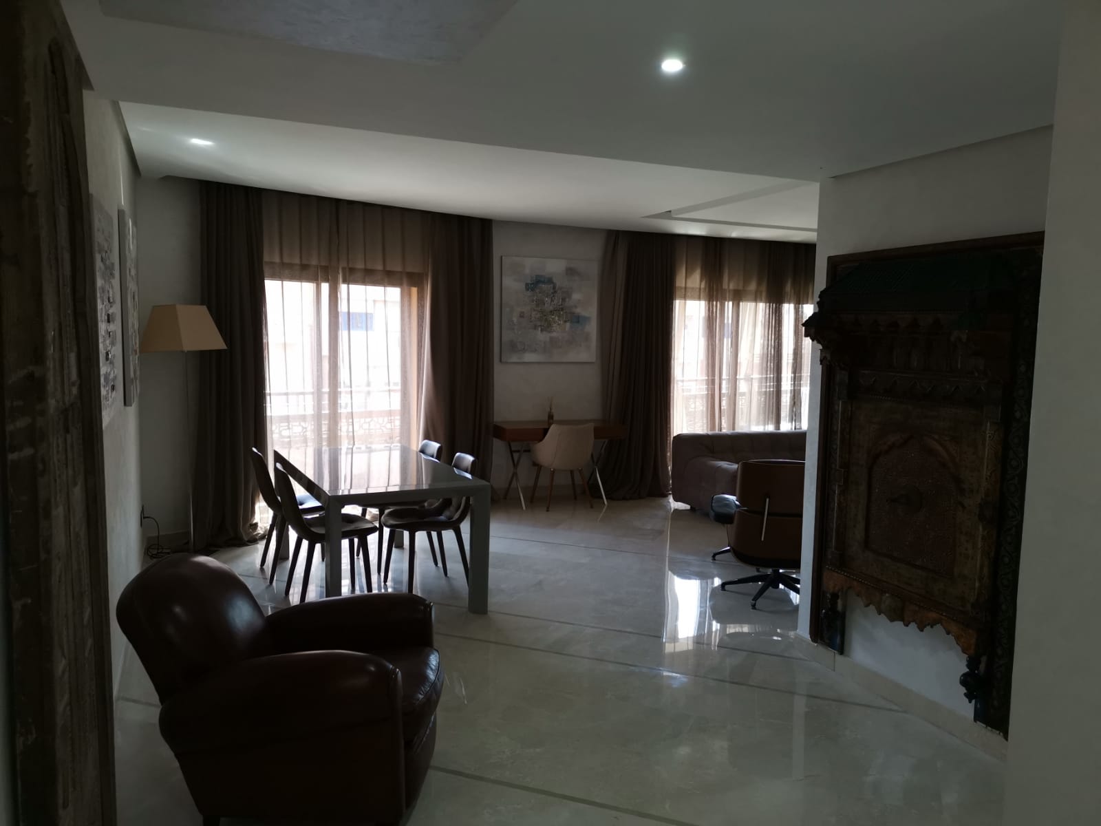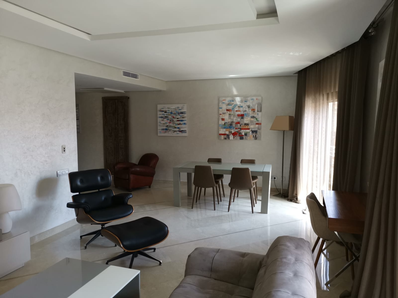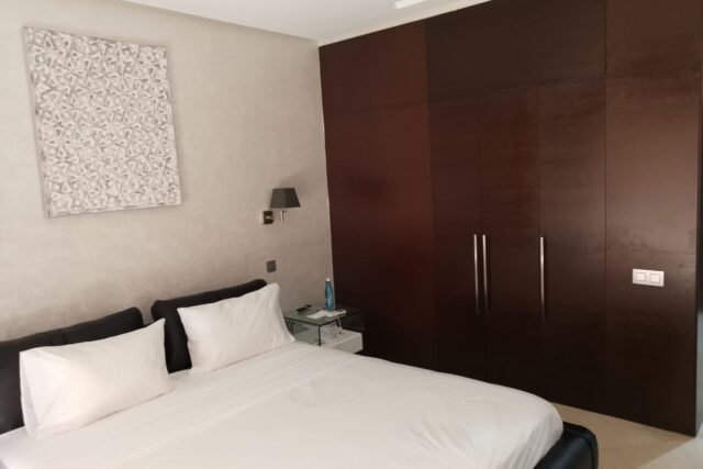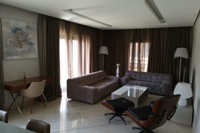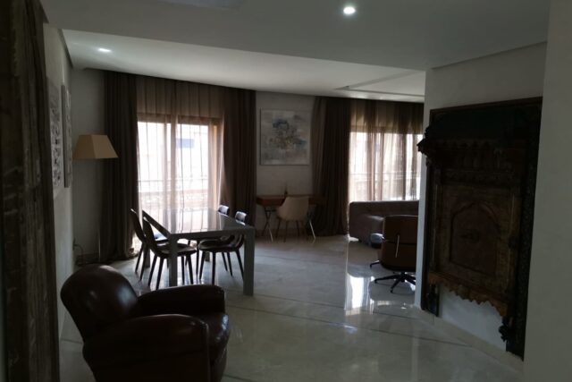 Magnifique appartement de 117 m² et une Terrasse de 32 m²,situé au cœur de Marrakech et proche de toute commodité, composé de deux Chambres avec db, sdb invités. 1 Box et 1 Parking fermé. Entièrement refait à neuf.