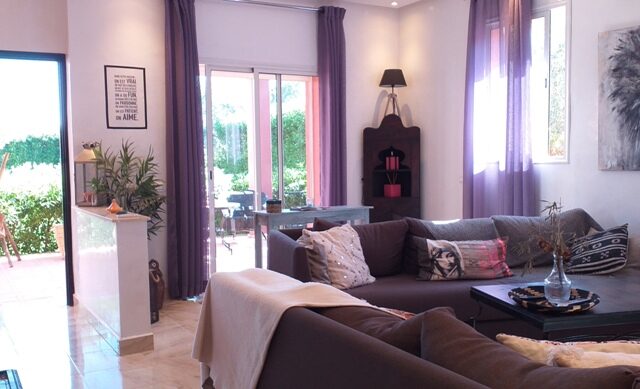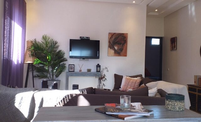 La Maison est de plain pied, elle est composée de 2 Chambres, 2 Sdb, Salon, Cuisine, une belle Terrasse donnant sur le Jardin et la Piscine, et un emplacement Voiture.