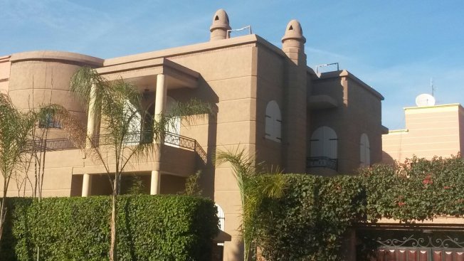 La villa est en très bonne finition, quartier targa Marrakech, le quartier est sécurisé, propre et bien entretenu , jardin exotique, répartie sur 4 étages ( dont cave) , plus de 10 grandes chambres spacieuses très bien éclairées , bien décorées , tadelakte, bois précieux , marbre , 3 salons et plusieurs ambiances, cheminées , grande cuisine avec bar et salle a manger , garage au sous sol , 2 portails automatiques ,( eau : puits ou distribution radema ) , chauffage centrale , toutes les chambres climatisés, veranda … jardins , parking souterrain , ( appartement pour domestiques disponible au dernier étage de la villa)
