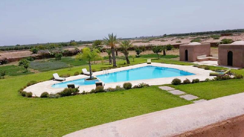 Avec une vue exceptionnelle sur l’Atlas et dans un cadre de détente et de calme, se niche cette Villa de charme de style marocain de 750 m² habitables et 10 000m² de Terrain, une belle architecture fusionnant entre modernité et traditionnel, située à 15 min des prestigieux Golf de Marrakech .