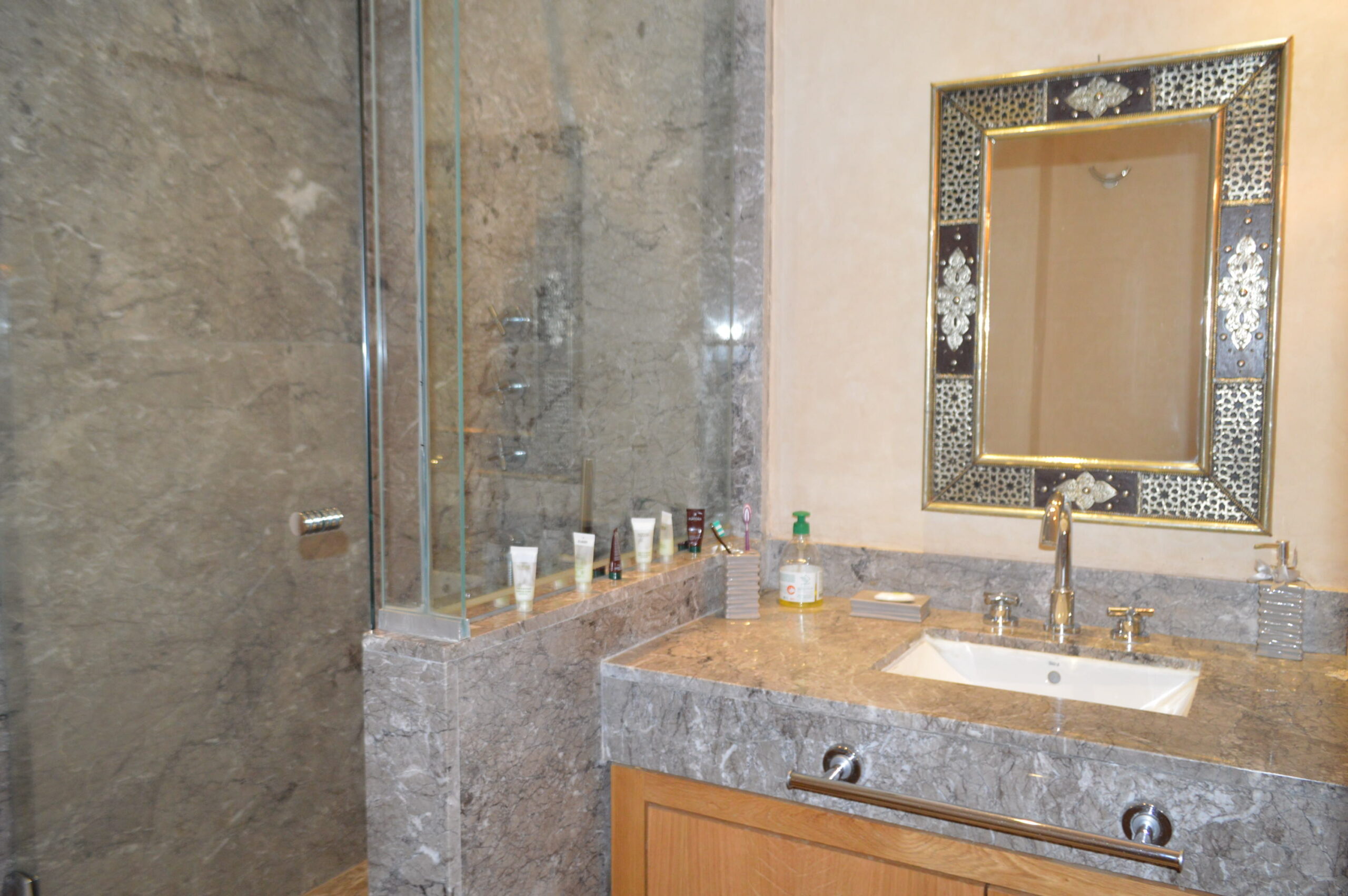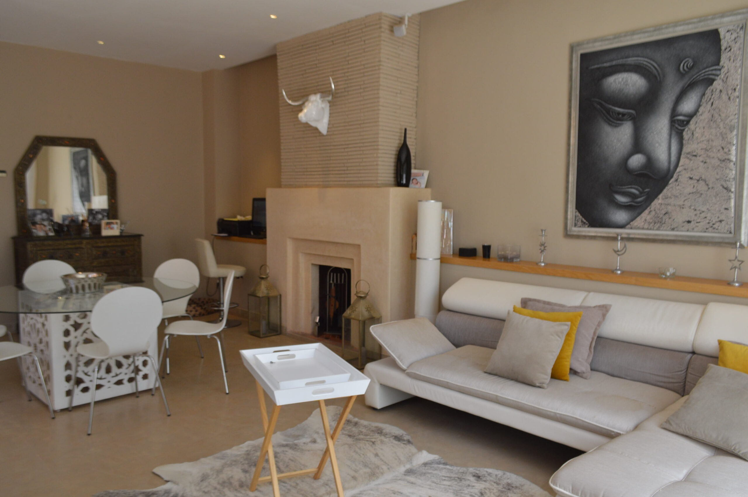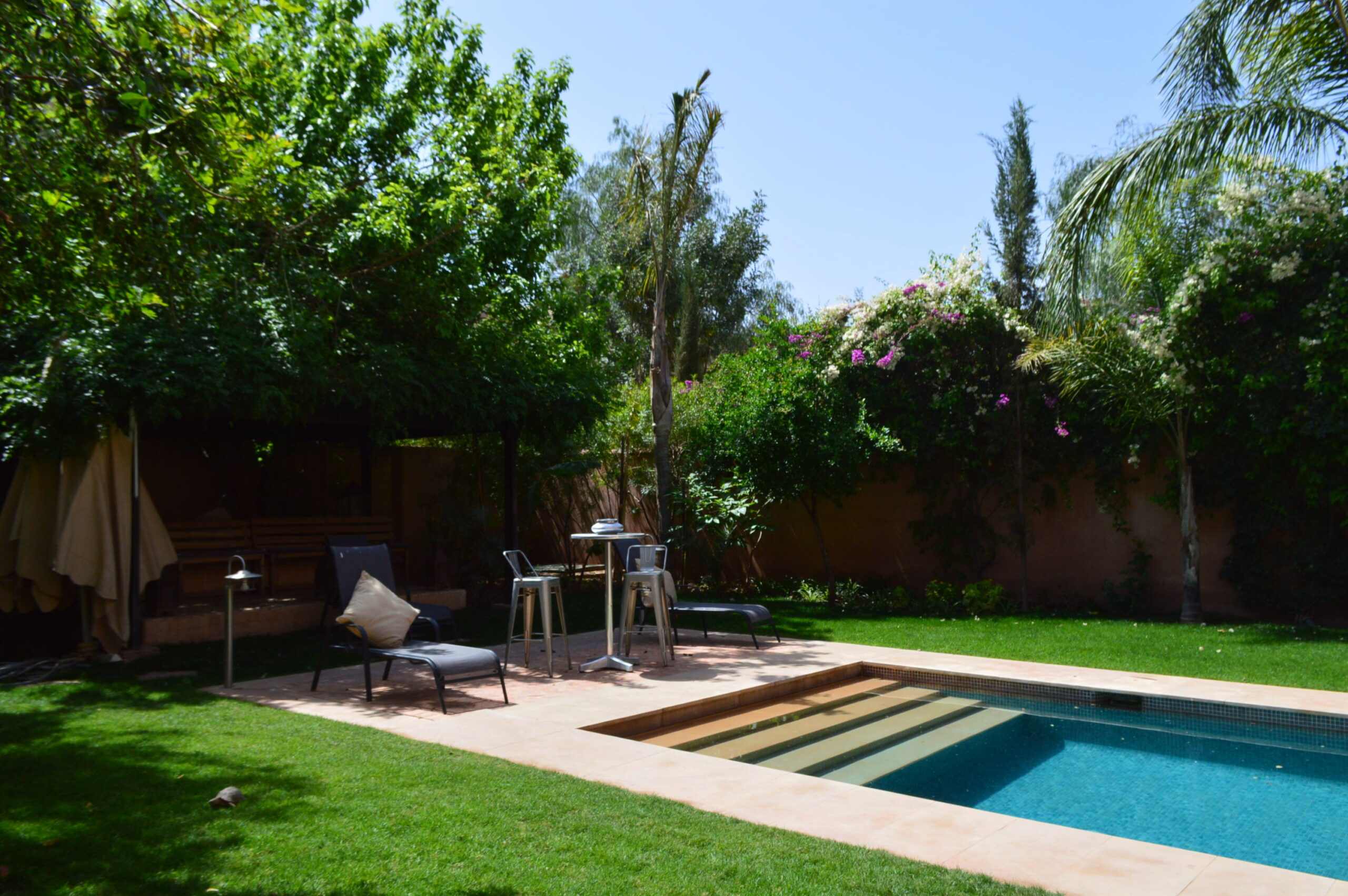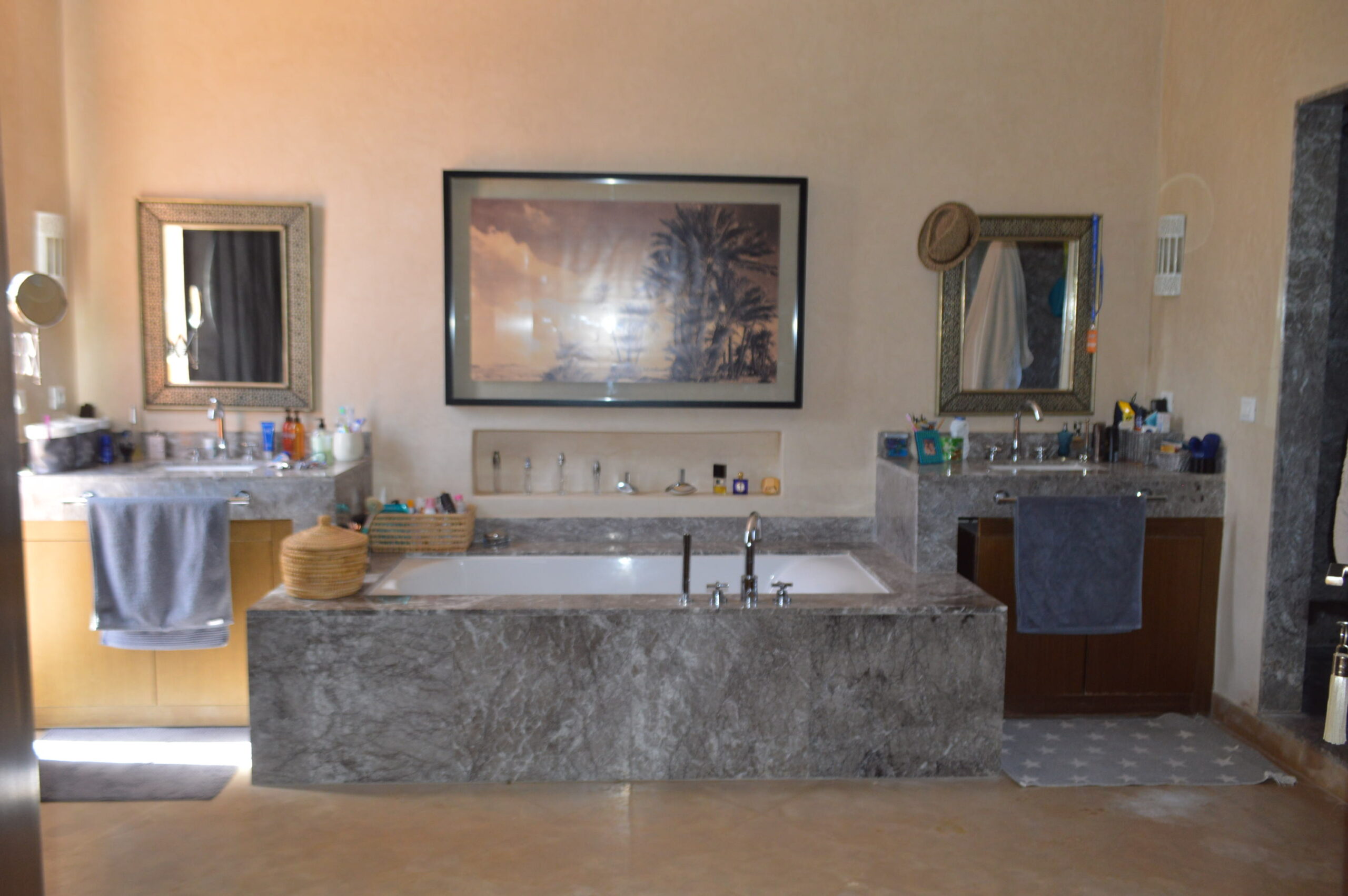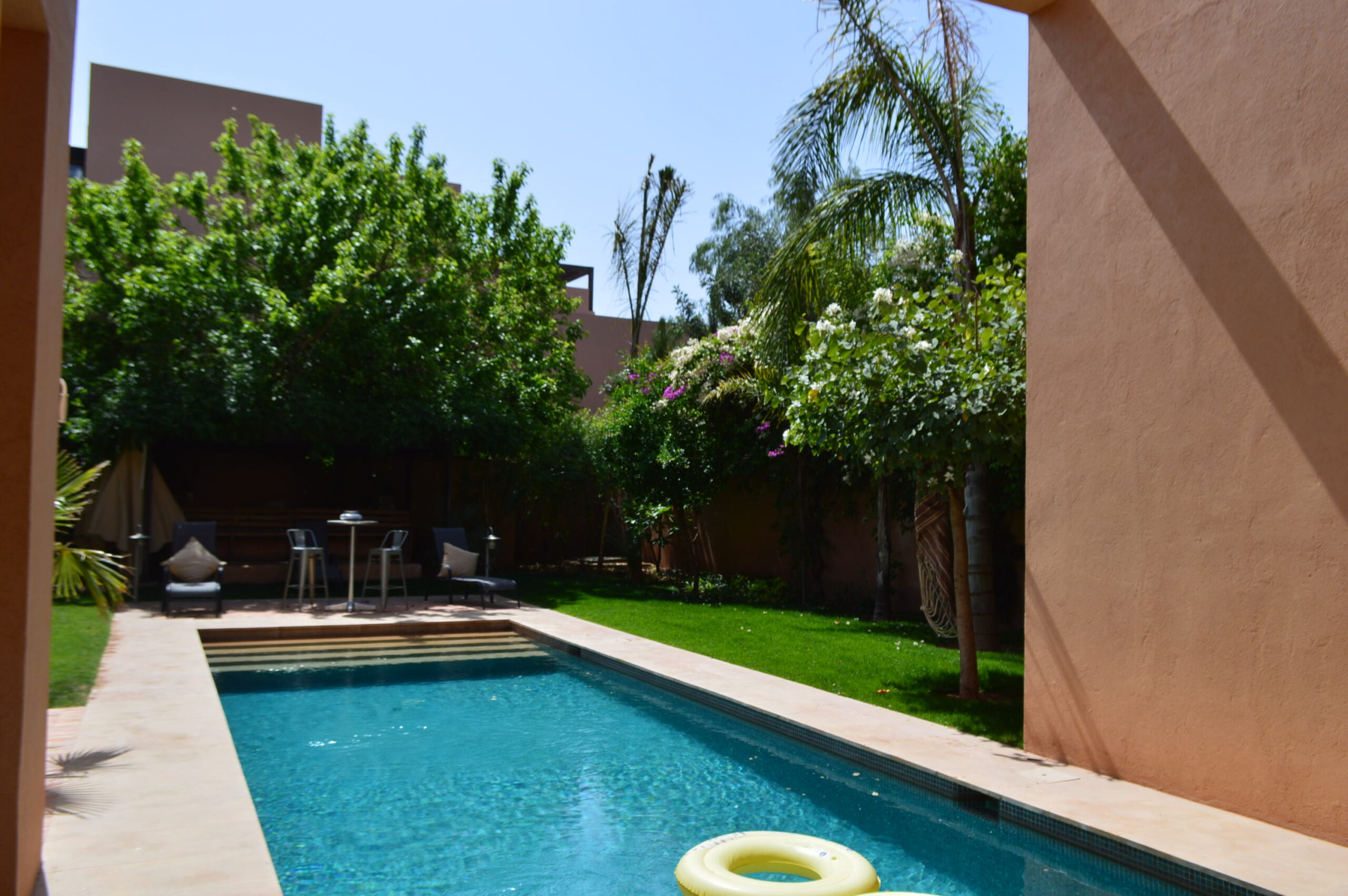 A seulement 10 minutes du centre ville de Marrakech, savourez le privilège de vous évader dans un site intemporel, exclusif, inoubliable et convivial loin de l’agitation et des foules. Située en bordure d’un parcours de golf de 18 trous, dessiné par Kyle Phillips, cette villa contemporaine est conçue dans un ensemble résidentiel piéton préservant un caractère urbain traditionnel, associent raffinement, modernité et élégance. Articulée autour d’un patio devant la piscine , découvrez au rez-de-chaussée son grand séjour avec cheminée, son espace bar, sa cuisine ouverte, une belle suite et une buanderie . Au 1er étage, deux grandes suites dont la master bed room avec sa salle de bain de maître et son dressing. Sur le toit, un véritable espace bien être vous attends: solarium avec pergola bioclimatique, jacuzzi et hammam! Cette villa a la particularité d’avoir entièrement été revisitée par son propriétaire: volets électriques, panneaux solaires…. Venez la découvrir!