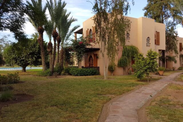Au cœur de la Palmeraie, dans une copropriété résidentielle très arborée, se situe une belle Maison 220 m² sur 2 niveaux, composée de 4 Chambres, 3 Sdb, Salon, Cuisine, plusieurs Terrasses à vivre, grande Piscine et un grand Parc collectif.