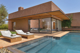 Belle Villa d’architecte de plain-pied au sein d’un prestigieux complexe golfique, km 13 du centre-ville de Marrakech.