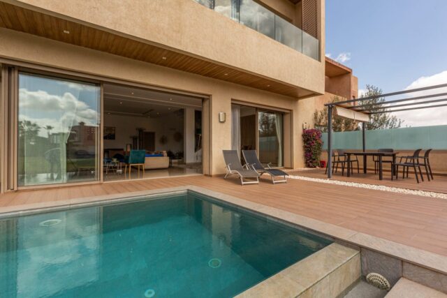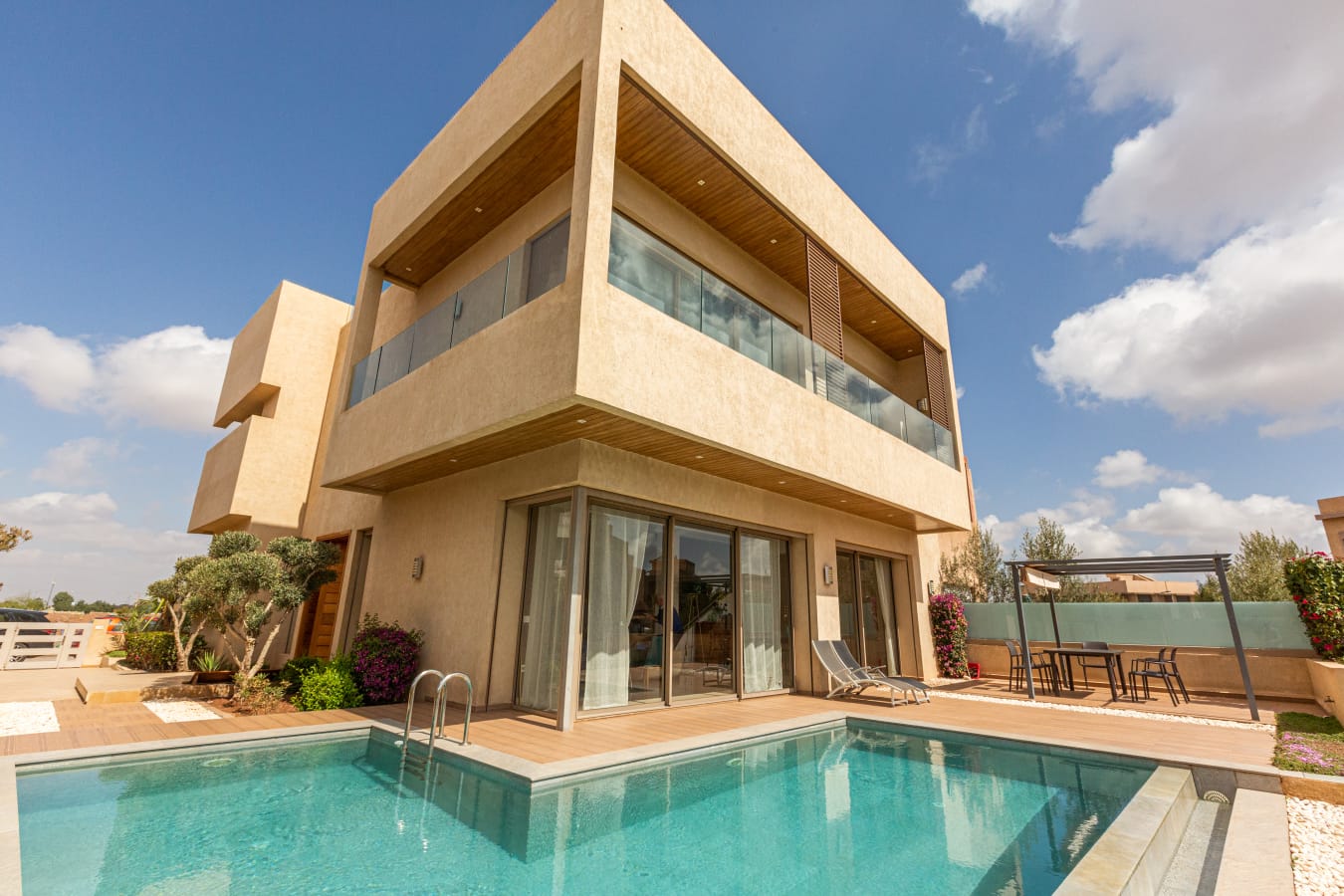 Entrée Amelkis 1: Rare- Villa neuve à louer meublée, 5 Ch, Piscine chaufée
