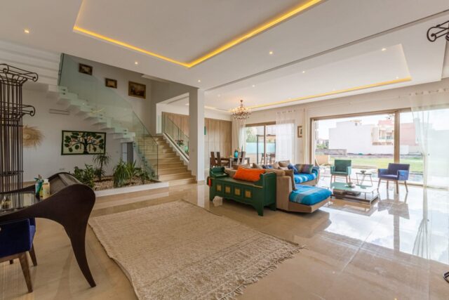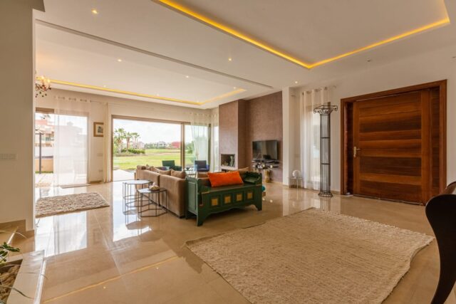 Belle Villa en première ligne de Golf, à vendre, au sein d’une résidence golfique clôturée et sécurisée, Terrain de 450 m² environ, 360 m² habitables sur deux niveaux: