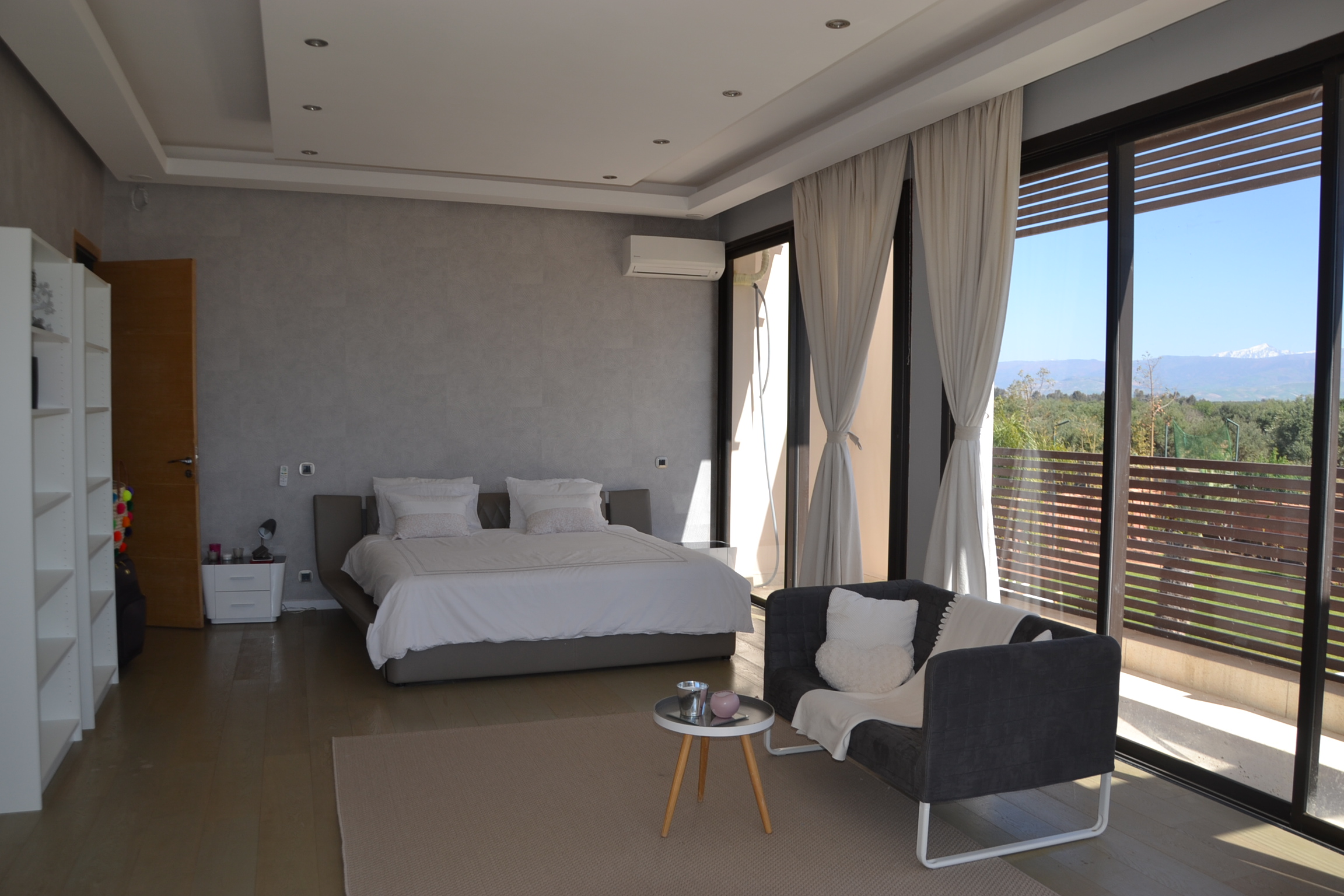 Vous pourrez gérer l’intégralité de votre villa sur votre smartphone!!!Posée sur 3000 m² de terrain arboré et paysagé, cette SUPERBE villa de 500 m² construits comprend au RDC : 1 double salon avec 1 coin SAM et cheminée donnant sur TERRASSE et PISCINE à débordement, 1 suite avec Dressing + SDE et 1 belle cuis. U.S. A l’étage : 2 ch. avec 1 SDB communicante et 2 balcons, 2 suites avec Dressing + 2 SDE attenantes + 2 balcons, 1 TERRASSE avec vue Atlas, 1 puits, portail électrique, ent. climatisée…