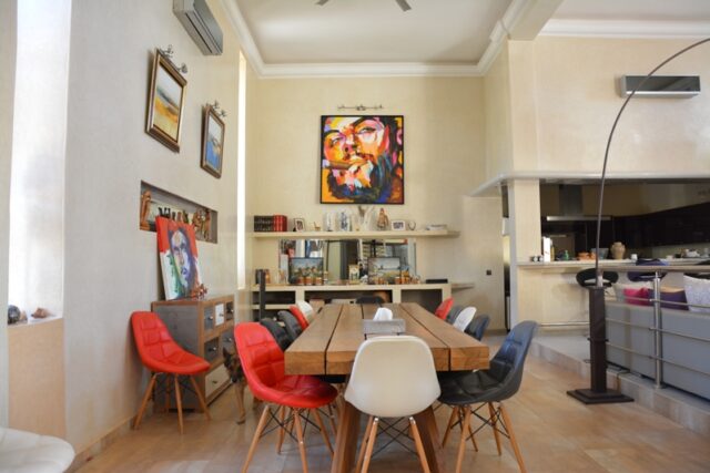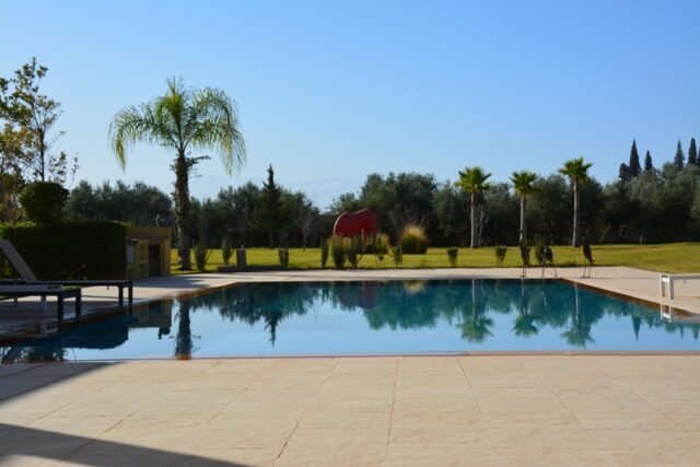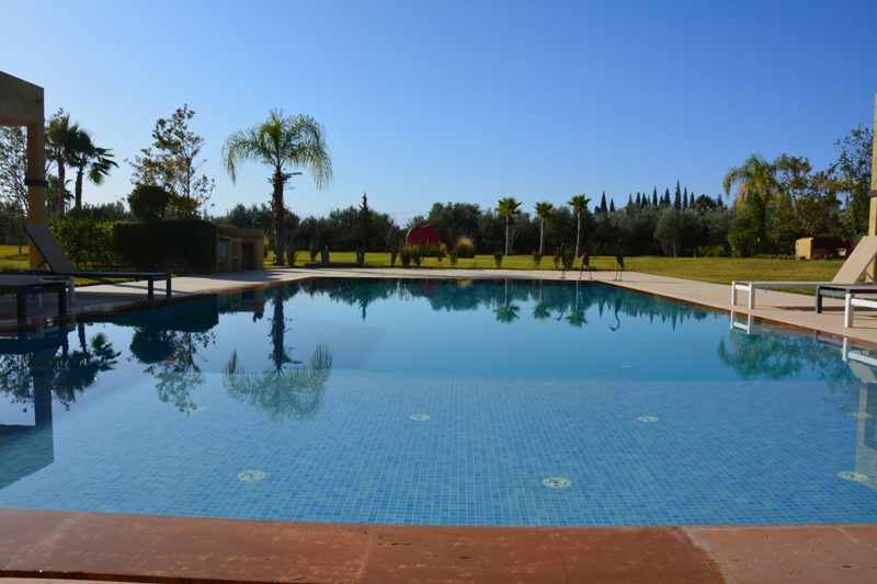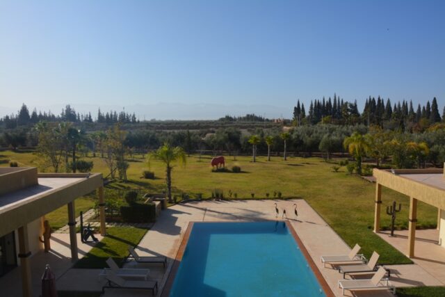 Proche Ecole américaine, Villa moderne de plain pied, très agréable à vivre, très lumineuse, exposition sud, Vue atlas depuis la Piscine.