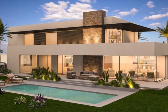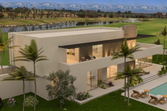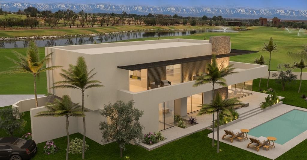 Très belle villa de style contemporain de 480 m² hab, Terrain 1031 m², 4 Suites, Piscine, Orientée plein Sud. Vue face à l’Atlas