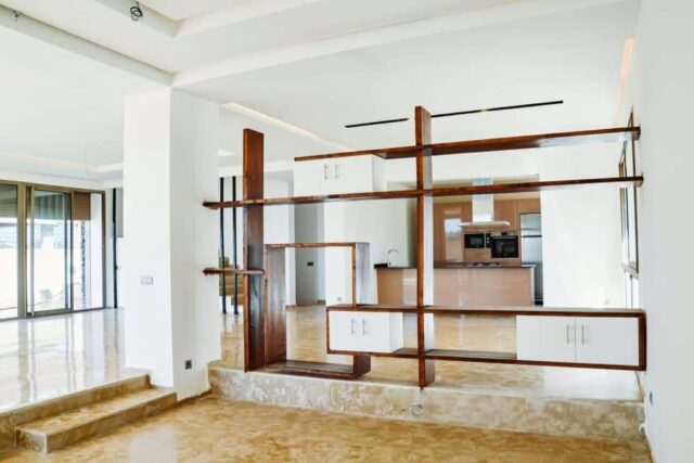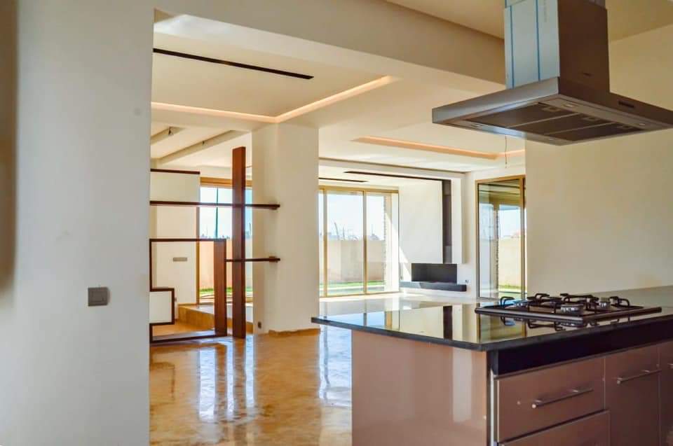 1 Suite parentale avec Dressing et Terrasse de 10 m² , 2 Suites avec Sdb , 2 Chambres avec salles de bains , 1 Chambre du personnel, Cuisine américaine équipée de la marque Bosh ,1 Hammam Beldi , 1 Salle de Cinéma , 1 Salle de Sport avec espace massage, Piscine privative , Jardin.