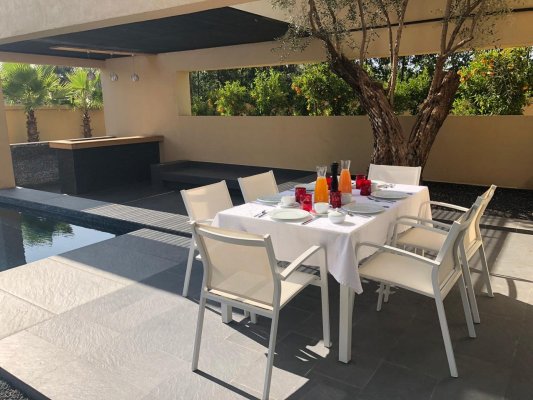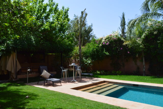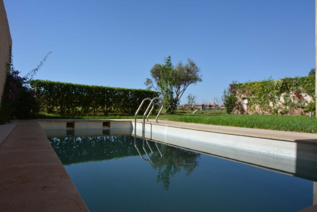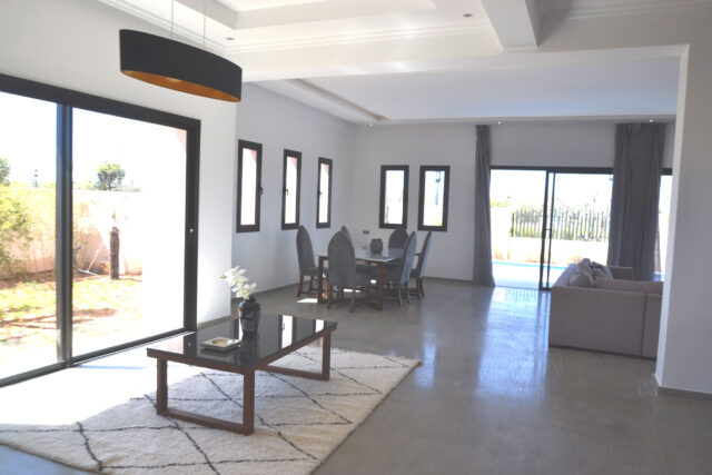 Baisse de Prix! Proche Amelkis: Villa bien construite d’un style épuré- 3 Suites, Piscine & Jardin- Orientée plein Sud- Sans vis à vis