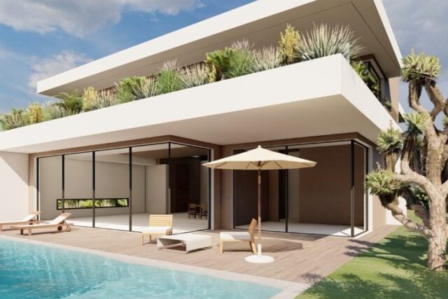 Amelkis- Jolie villa d’Architecte à vendre , en cours de réalisation, 3 Chambres, possibilité d’une 4ème, Jardin et Piscine privative
